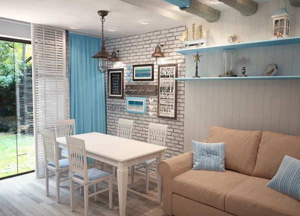 - রান্নাঘর অভ্যন্তর অভ্যন্তরে সামুদ্রিক শৈলী । রঙের স্কিমটি সাদা এবং হায়-নীল, সমুদ্র তীরে বিশ্রাম এবং অনেকগুলি বিশ্রামহীন স্মৃতি।