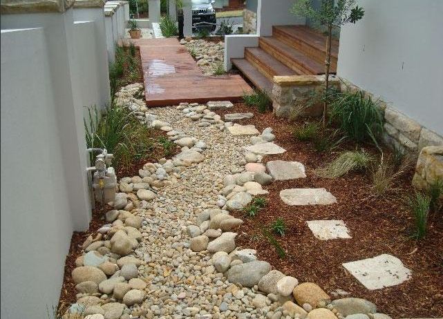 একটি আরও টেকসই পথ উপযুক্ত প্রাকৃতিক পাথর জন্য, ঘর বা বেড়া নির্মাণ থেকে বামে। পাথর দিয়ে পাথ সমাপ্তি অত্যন্ত উপযুক্ত যেখানে পাথ একটি বাঁকা আকৃতি আছে, তারা ইচ্ছামত স্থাপন করা যেতে পারে, যা মোড় এবং bends সঙ্গে তাদের বিস্তার করতে সাহায্য করে।
