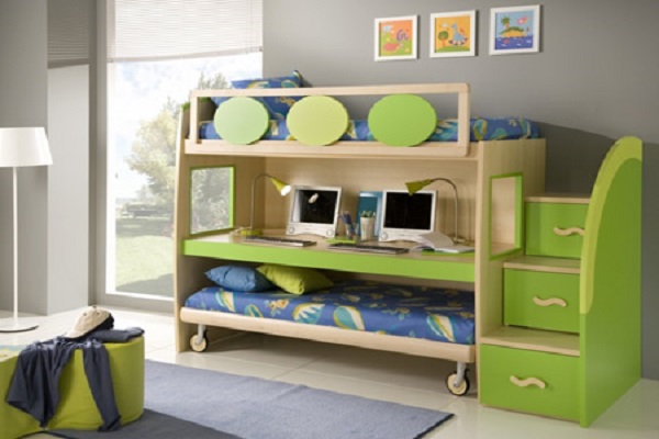 একটি কোণের বিন্যাসের জন্য স্তুপ শয্যা কেবল নয়টি (এবং এমনকি তিন বা চার) বার্থ মিটমাট করে, তবে জিনিস সংরক্ষণের জন্য কর্মক্ষেত্রের স্থান এবং অংকের জন্য জায়গা ছেড়ে দেয়। বৃহৎ পরিবারের জন্য যারা একই রুমের সমস্ত শিশুকে মিটমাট করতে চায়, অতিরিক্ত বালি ছাড়াই মাল্টি-বিছানা কাঁধে ব্যাবহার করা হবে, এবং দুই সন্তানের বাবা-মায়ের multifunctional কোণগুলি উপভোগ করবে।