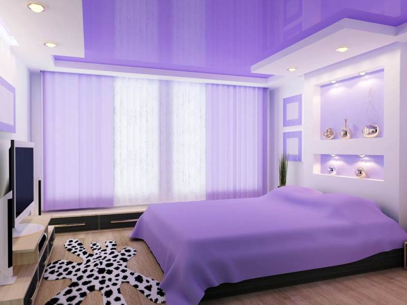 প্রসারিত সিলিং সঙ্গে বেডরুম নকশা
