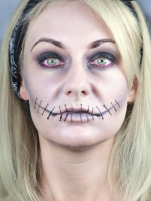 স্বর সংমিশ্রণ করার পরে, আপনি আপনার চোখ অভিব্যক্তিপূর্ণ করা উচিত। হ্যালোইন জন্য চোখের মেকআপ সহজতম ধারণা ধোঁয়াশালী চোখের টেকনিক ব্যবহার। এটি করার জন্য, আপনি অন্ধকার ছায়াছবি, কালো পেন্সিল বা eyeliner, মাস্কারার ছায়াগুলির প্রয়োজন। চক্ষু সকেটগুলিকে আরো ভয়ঙ্কর দেখানোর জন্য, ধূসর, গাঢ় বাদাম বা বেগুনিতে হাইলাইট করা প্রয়োজন, কেল্লা-কালো পেন্সিল দিয়ে চোখের পল্লির লাইনকে জোর দেওয়া। চমৎকার, যদি ওভারহেড পুতুল lashes, রঙিন লেন্স আছে। এই উপাদানগুলি ধন্যবাদ একটি হত্যাকারী পুতুল বা একটি মৃত নববধূ একটি জনপ্রিয় ইমেজ তৈরি করা সহজ। এই ক্ষেত্রে ঠোঁট একটি ভিত্তি সঙ্গে discolored হয় অথবা একটি "নম" সঙ্গে একটি পেন্সিল এবং উজ্জ্বল লিপস্টিক ব্যবহার করে মডেল।